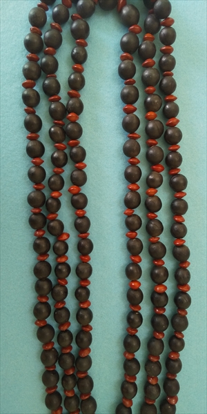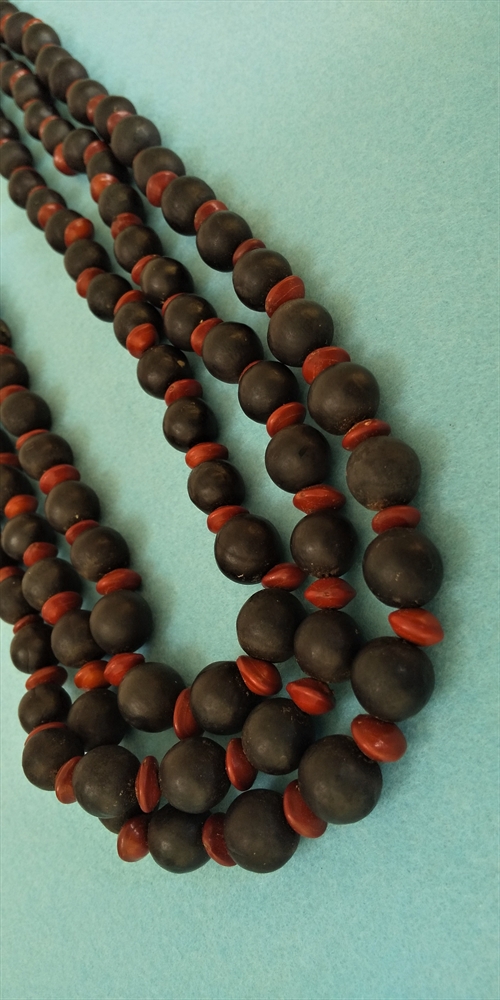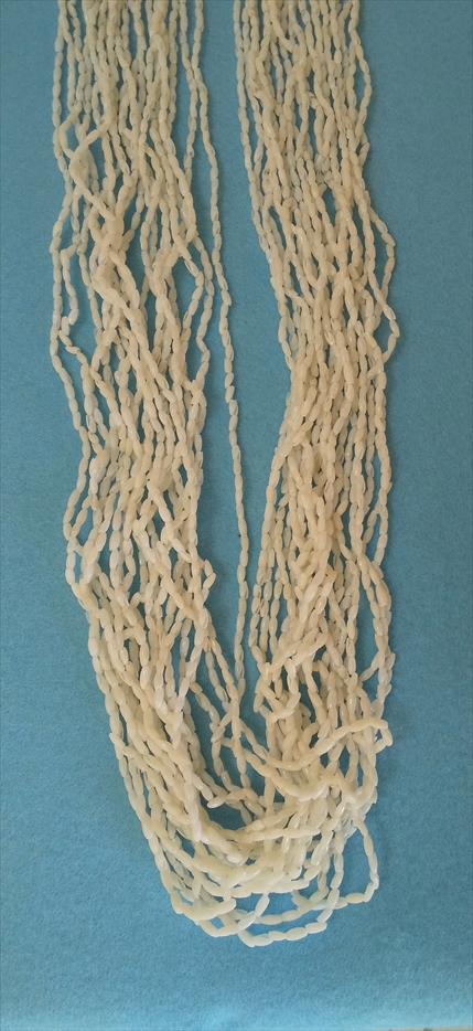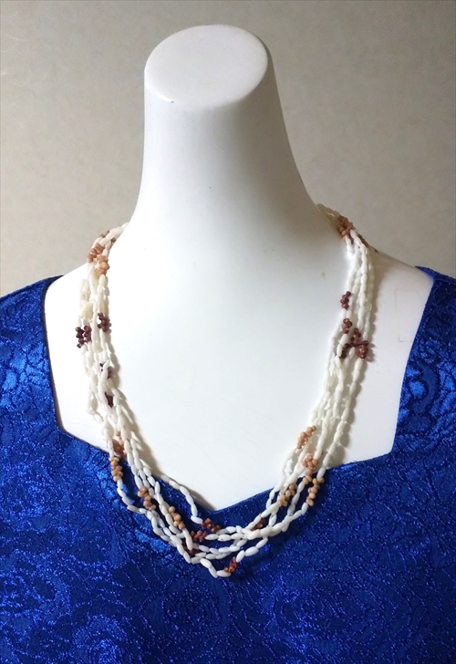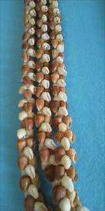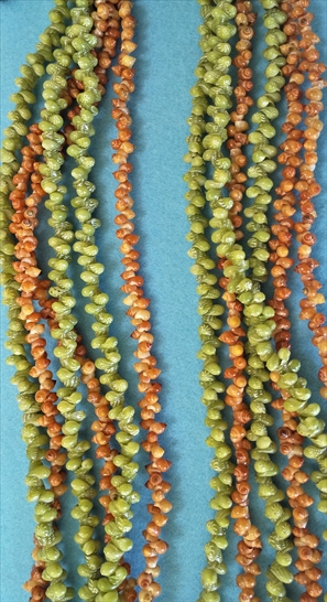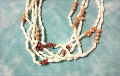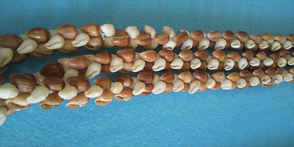 3連に仕上げるのには、同じ種類の色と形と大きさの貝を揃えなければ出来上がりません。