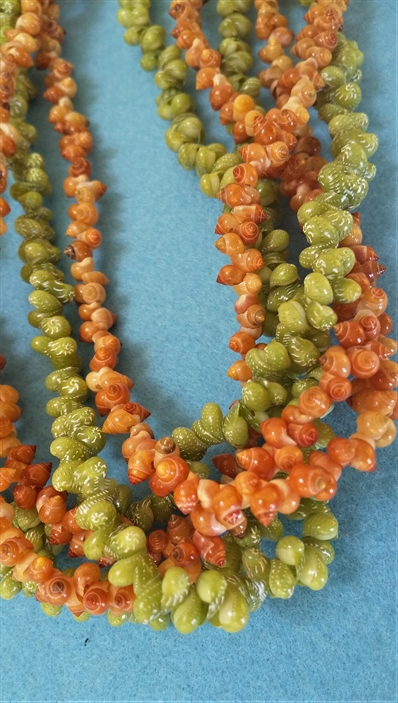 ビリビリの赤い実とプーマイアオという名の貝の組み合わせ。