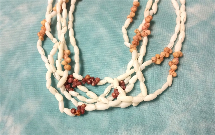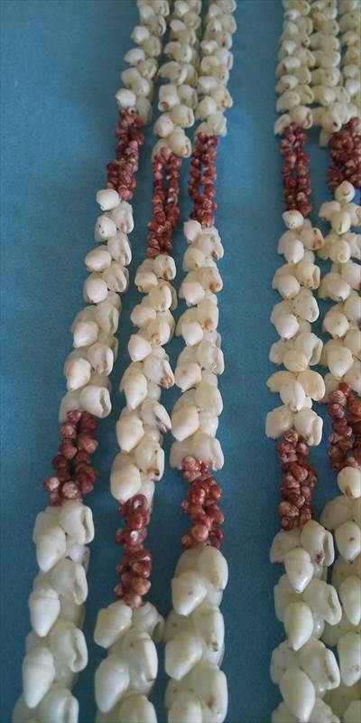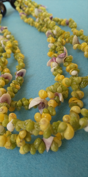 太平洋沿岸諸国で採れる貝を輸入して作られたレイ。