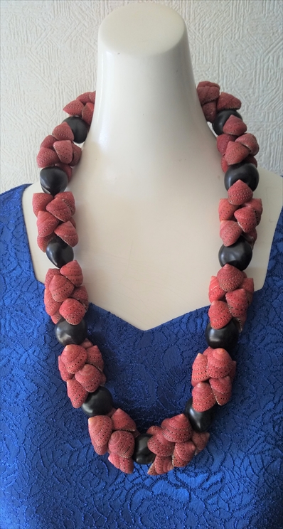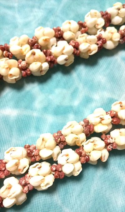 ハワイでとれる全ての種類のモミとカへレラニを一本のレイに仕上げました。