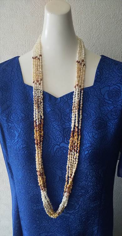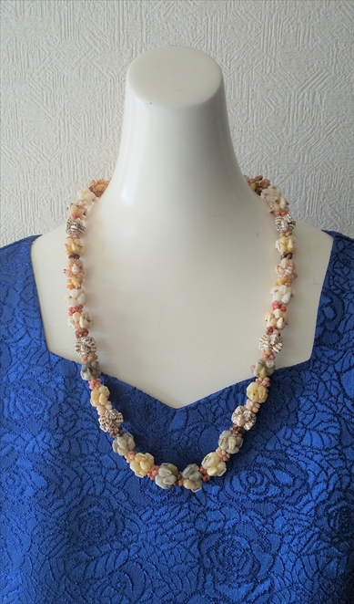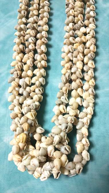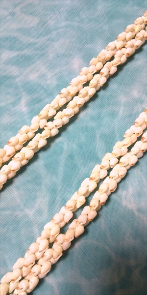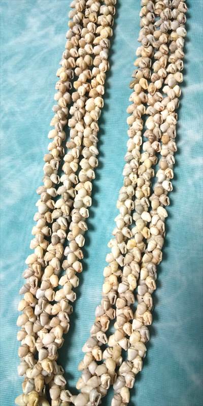 貝一つに重さがありますのでレイに仕立てるとボリュームがあります。