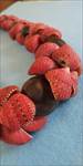 クラウンフラワーの形に編んだモミは全て違う色と模様。
